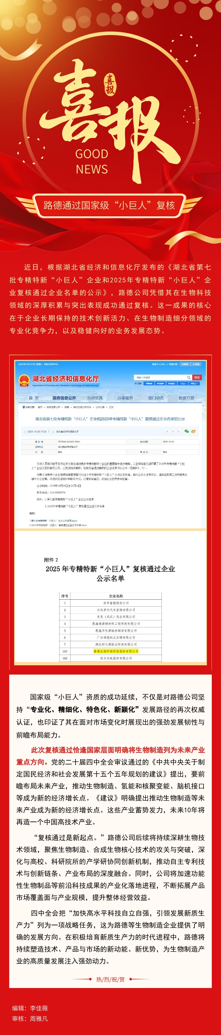 【路德·要聞】國家級認(rèn)證!路德通過 2025年專精特新“小巨人”復(fù)核,彰顯生物科技硬核實(shí)力